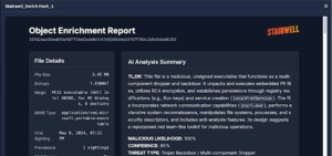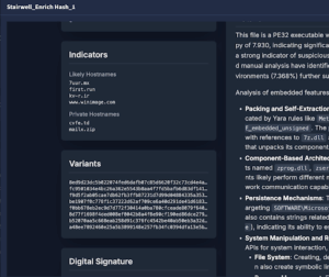 But when the playbook runs its Stairwell hash enrichment action, both file hashes get sent in for analysis. Through Stairwell’s Variant Discovery, the driver and DLL appear as variants of each other, tied together by similarities in the files. What looked like noise in two different places turns out to be connected pieces of the same campaign.