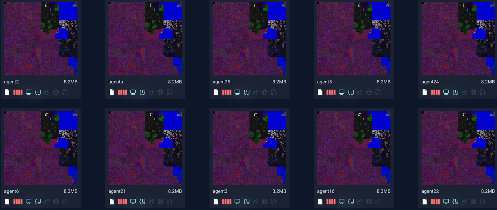 Across most matches, structural similarity was extremely high, which we visualized using Hilbert Curve analysis within our platform. Ten of the matches are shown in the image below: