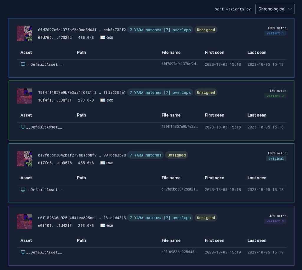 One area in which Stairwell can expand on and provide significant value is finding unknown variants. Variant analysis, as a whole, is a powerful tool for identifying copies of malware that may be difficult to identify using traditional pivoting methods. Stairwell’s Variant Discovery tool allows researchers to explore and analyze potential new malware variants. By leveraging Variant Discovery, researchers can quickly pinpoint similarities and differences among different malware samples, shedding light on evolving techniques employed by malicious actors.